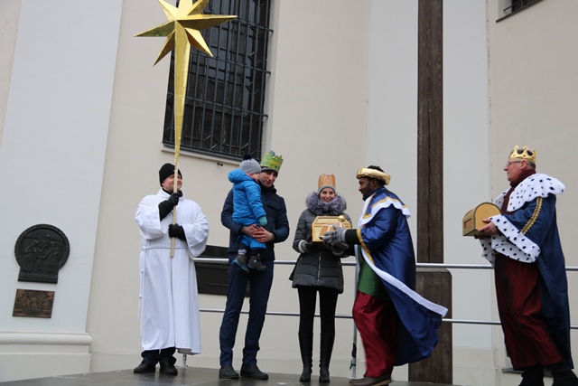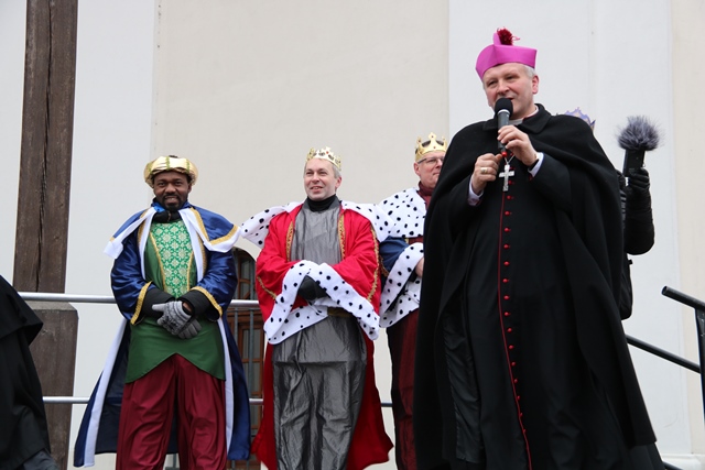 Przed kaliską bazyliką organizatorom i uczestnikom orszaku podziękował bp Łukasz Buzun. – Przez to, że idziemy w tym orszaku wyrażamy naszą wiarę – stwierdził duchowny.
