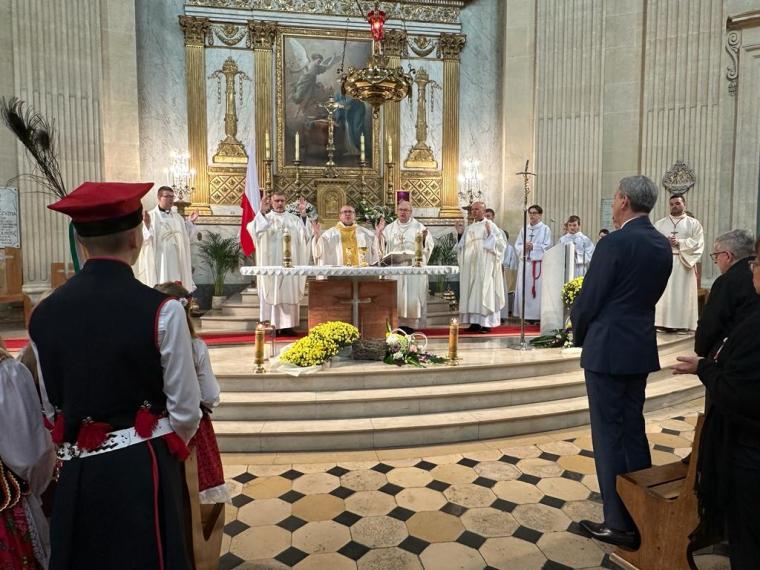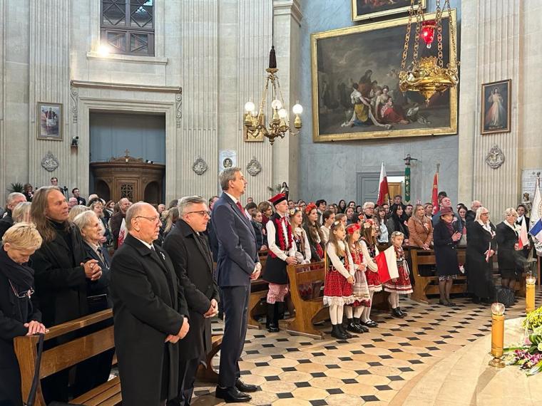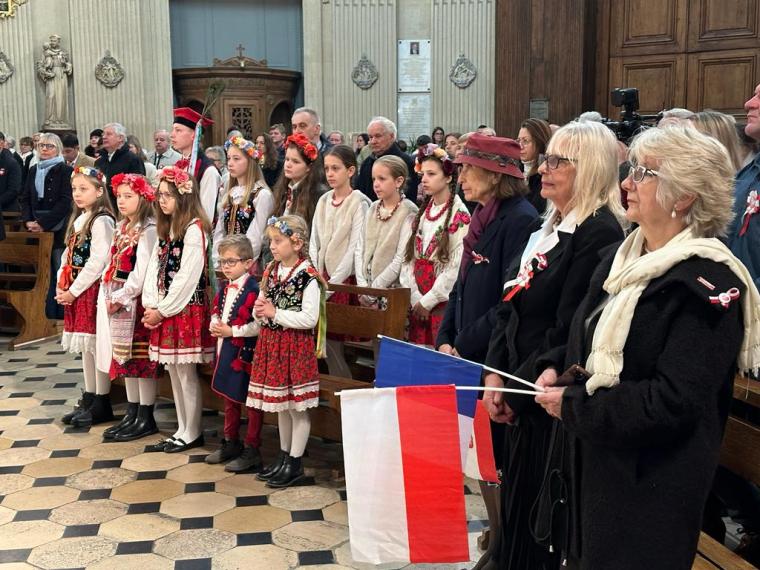 Okolicznościowej Mszy św. przewodniczył wicerektor Polskiej Misji Katolickiej we Francji i dyrektor Seminarium Polskiego w Paryżu ks. dr Paweł Pietrusiak. W koncelebrze znaleźli się też rektor PMK ks. Bogusław Brzyś, były rektor ks. infułat Stanisław Jeż, proboszcz parafii ks. Łukasz Skawiński oraz wikariusz ks. Jan Dziedzina. Ambasadę RP reprezentowali zastępca Ambasadora minister Wiesław Tarka oraz konsul Andrzej Szydło. Nie zabrakło przedstawicieli organizacji patriotycznych i kombatanckich z pocztami sztandarowymi.