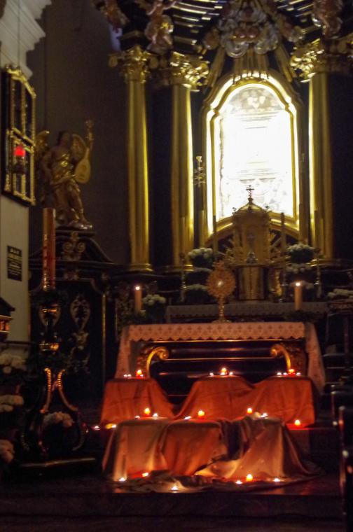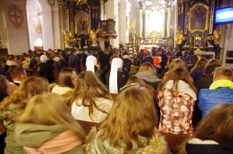 Po uczcie duchowej przyszedł czas na coś dla ciała. Każdy uczestnik mógł poczęstować się drożdżówką w jadalni pielgrzyma, która wypełniła się w ten wieczór po brzegi. Ostatnim punktem dnia była adoracja Pana Jezusa w Najświętszym Sakramencie, która była okazją do zgłębienia historii Jonasza i odniesienia jej do swojego życia.