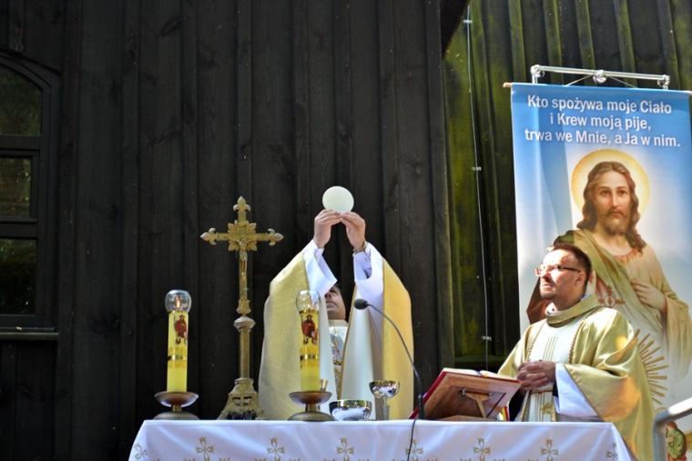 31. maja obchodziliśmy Uroczystość Najświętszego Ciała i Krwi Pańskiej. Jest to dzień wyjątkowy w życiu Kościoła, ale także w życiu każdej wspólnoty parafialnej. . W tym szczególnym dniu Jezus ukryty pod postacią chleba w Najświętszym Sakramencie opuszcza kościół, by przemierzając ulice miast, miasteczek, wiosek zobaczyć, jak się powodzi Jego dzieciom. W mikstackiej wspólnocie parafialnej uroczysta suma, po której ulicami miasta wyruszyła procesja do czterech ołtarzy została odprawiona przy Diecezjalnym Sanktuarium Świętego Rocha o godz. 9:00. Przewodniczył jej ks. kan. Krzysztof Ordziniak, kustosz sanktuarium, współcelebransem był ks. wikariusz Krzysztof Lipiński. Ksiądz proboszcz polecał w Eucharystii wszystkich parafian, tych którzy przygotowywali ołtarze oraz tych, którzy będą obsługiwali procesje. Homilię wygłosił ks. kan. Krzysztof Ordziniak. Rozpoczynając podkreślił, że dwa razy w ciągu roku Bóg opuszcza mury kościoła, by udać się do swoich dzieci. Czyni to w uroczystość Wszystkich Świętych, kiedy to idzie na cmentarze, by opłakiwać wraz z nami naszych bliskich, przyjaciół, znajomych. To drugie wyjście ma charakter radosny i ma miejsce właśnie w uroczystość Najświętszego Ciała i Krwi Pańskiej. W tym dniu- jak podkreślił celebrans przygotowujemy ołtarze, dekorujemy domy, aby przywitać Pana, nawiedzającego zagrody swoich dzieci. Kontynuując ks. kan. przywołał słowa pieśni „ Zróbcie Mu miejsce, Pan idzie z nieba…” zaakcentował, że wskazuje ona z jednej strony cel wyjścia Jezusa ze świątyni, ale także sposób w jaki powinniśmy czcić przyjście Pana. Kaznodzieja wskazał, że pieśń ta wskazuje dary jakie przynosi nam Pan. Zaznaczył, że udział w procesji jest wyznaniem naszej wiary. Przytoczył wydarzenie z czasów okupacji, kiedy to grupa więźniów udała się z obozu pracy do miasteczka eskortowana przez esesmanów. Po drodze spotkali kapłana jadącego z Wiatykiem do chorego. Wszyscy uklękli. Ów kapłan, jak wskazał celebrans, będąc pod wrażeniem takiej relacji więźniów zapisał w kronice mi. in. takie słowa: „Naród, który ma taką wiarę, nie może zginąć”. Ks. kan. Krzysztof zachęcał zebranych, by zapamiętali te słowa, ale także by czcili Chrystusa nie tylko pokłonem, ale także śpiewem. Podkreślił, że procesja nie jest pochodem niemych, a polskie pieśni eucharystyczne są niezwykle piękne. Przywołał przykład barwnych procesji Bożego Ciała odbywających się w Łowiczu, które zostały wpisane na Krajową Listę Niematerialnego Dziedzictwa Kulturowego, na której jak przypomniał ks. kustosz znajdują się także nasze uroczystości odpustowe ku czci św. Rocha połączone z obrzędem błogosławieństwa zwierząt.