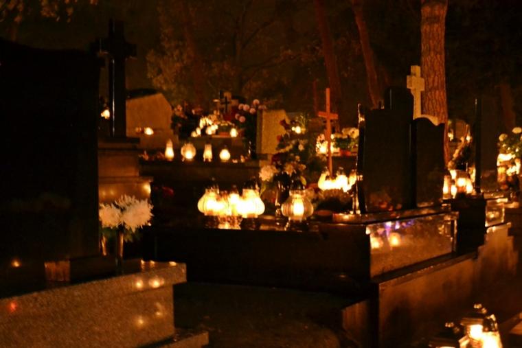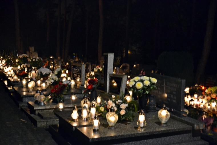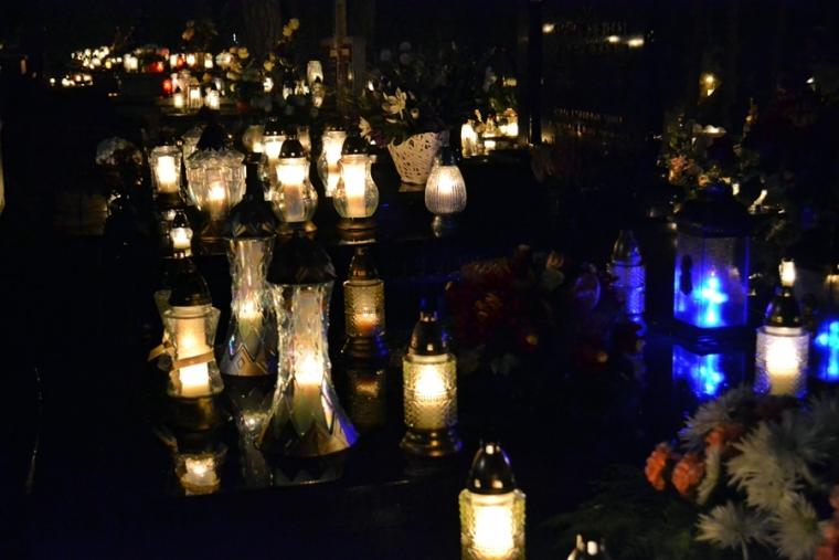Głęboka w treści i zachęcająca do refleksji, ale i przemiany życia była ta przytoczona w rozważaniu legenda. Czy potrafimy odwiedzić, pocieszyć, dodać otuchy, być przy człowieku pogrążonym w smutku, płaczącym, biednym, głodnym, pragnącym sprawiedliwości. Czy potrafimy zdobyć się na zwykły ludzki gest? Być może to właśnie od tych zwykłych, pozornie nic nie znaczących gestów świadczących o miłości wobec bliźnich będzie zależało co usłyszymy od Boga, gdy przyjdzie nam zdać sprawę z naszego życia. Pan ofiarował nam czas, ale także przykład życia tak wielu świętych. Oni mogli osiągnąć świętość, możemy i my. Czy osiągniemy? Po Mszy Świętej alejkami wokół Sanktuarium wyruszyła procesja, podczas której przy pięciu stacjach modliliśmy się za zmarłych: kapłanów, biskupów, papieży, za rodziców, rodzeństwo, dziadków, krewnych, przyjaciół. Przy trzeciej stacji modlitwą objęliśmy zmarłych parafian, sąsiadów. Nie zabrakło także modlitwy w intencji tych, których miejsca wiecznego spoczynku nie znamy, a także za tych którzy zginęli obozach koncentracyjnych. Przy piątej stacji modliliśmy się za wszystkich zgromadzonych na cmentarzu prosząc dla nich o pragnienie osiągnięcia świętości. Modlitwą objęta została także ta osoba, którą jako pierwszą spośród zebranych Pan powoła do siebie. Nie wiemy kto to będzie, to wie tylko Bóg. Niewątpliwie modlitwa przy tej stacji stanowiła okazję do tego, by zadać sobie pytanie- czy jestem przygotowany ( przygotowana) na spotkanie z Panem. Uroczystość uświetniła orkiestra parafialna. O godz. 19:00 w sanktuarium spotkaliśmy się na modlitwie różańcowej połączonej z wypominkami. Mimo padającego deszczu jeszcze w późnych godzinach wieczornych wielu przemierzało cmentarne alejki, zatrzymując się przy grobach bliskich, przyjaciół, znajomych. Ofiarowana modlitwa, położone na grobach kwiaty, płonące lampki są dowodem na to, że o nich pamiętamy…