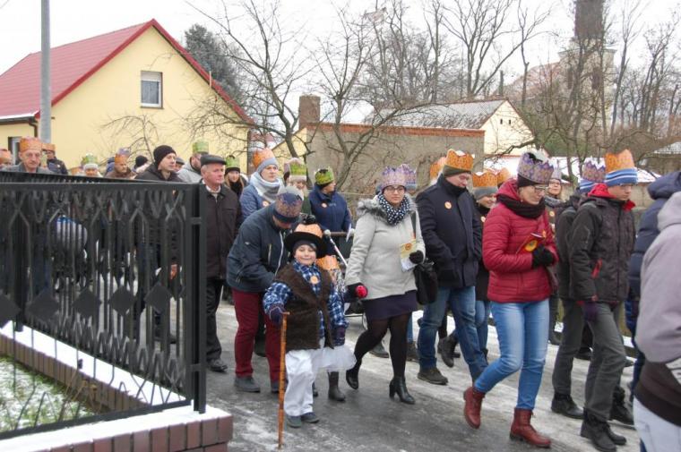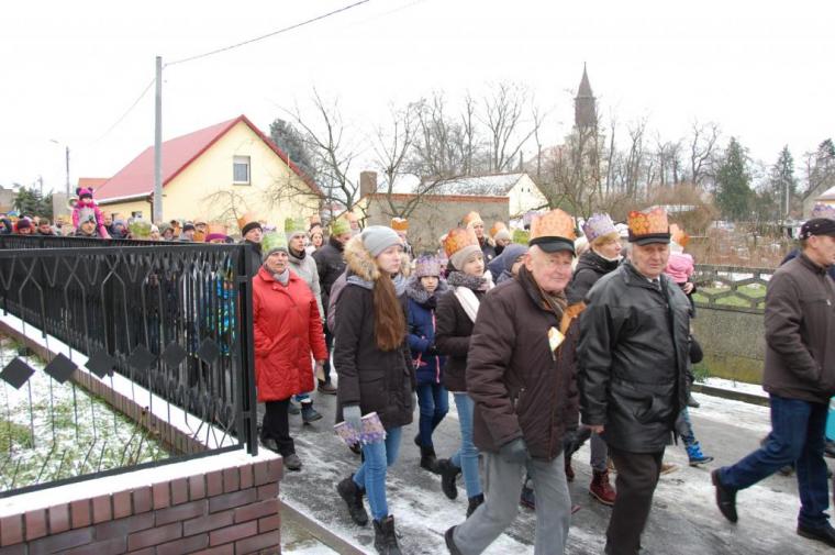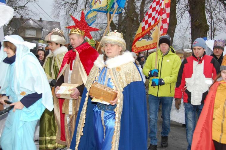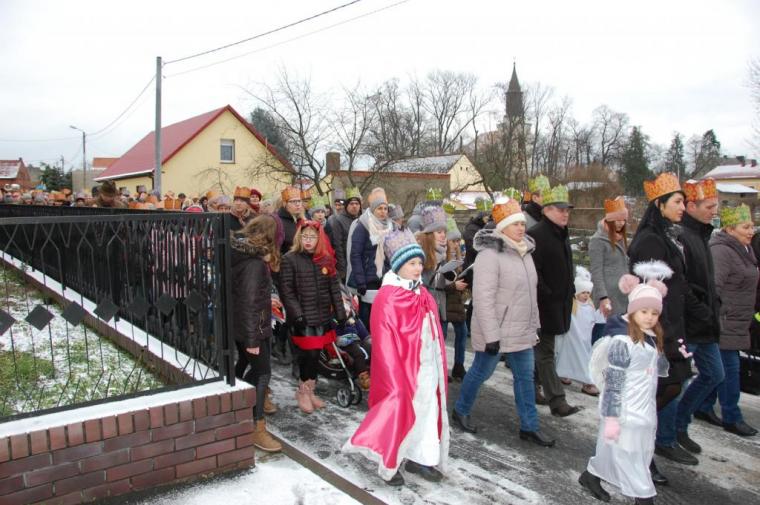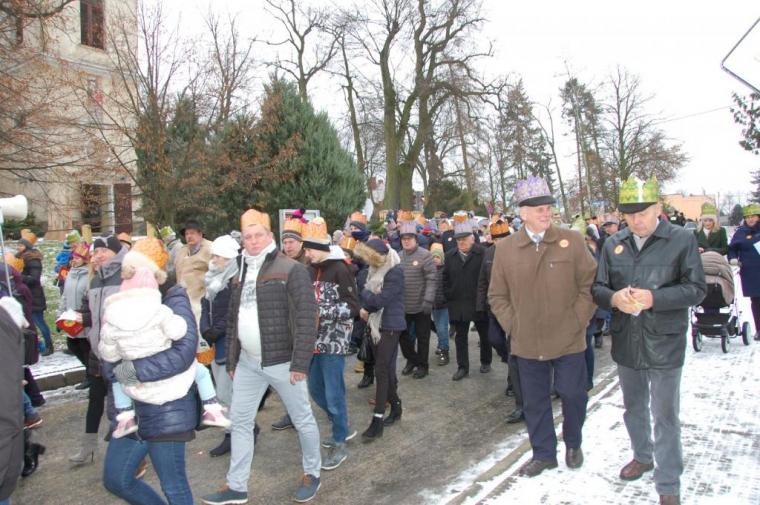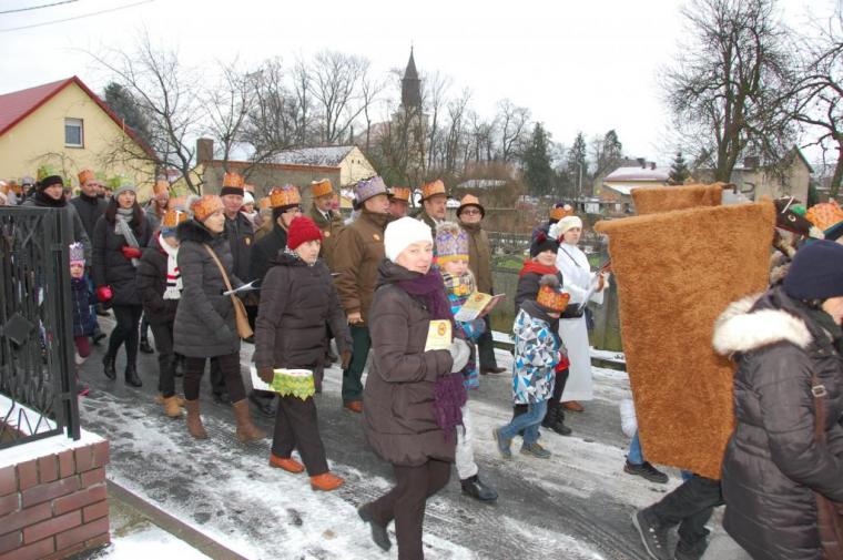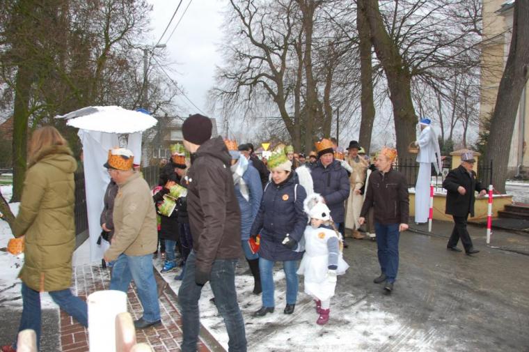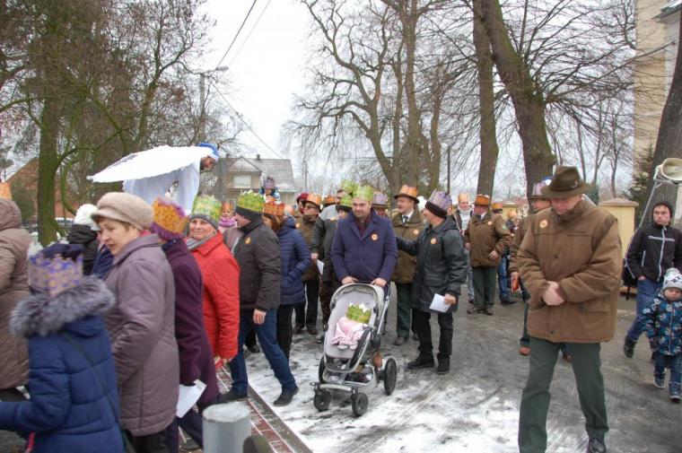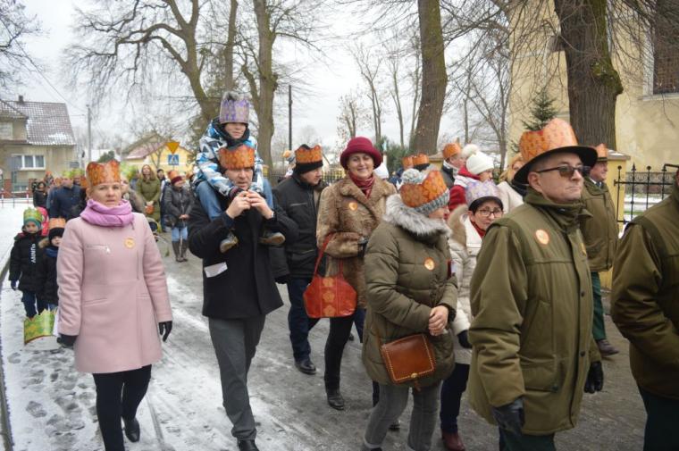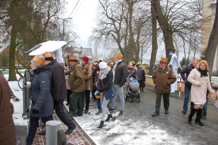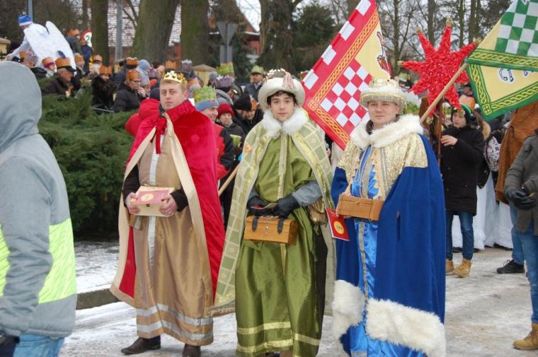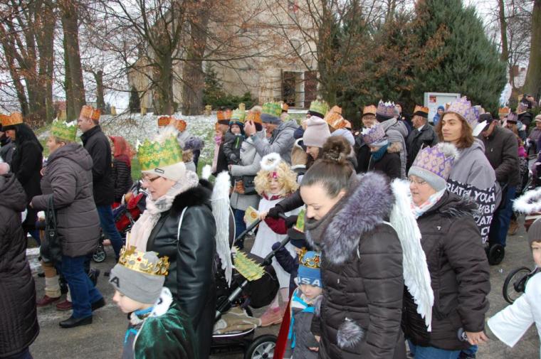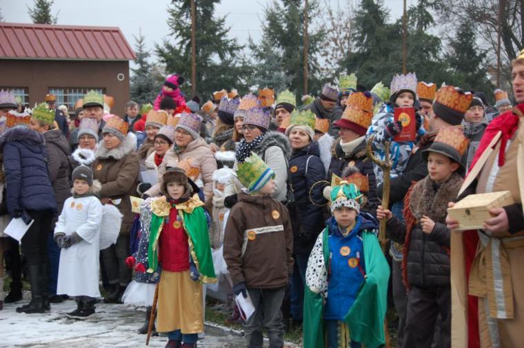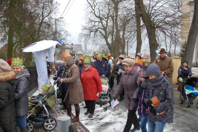 zostały  zainaugurowane uroczystości święta Trzech Króli. Orszak Trzech Króli wyruszył sprzed świątyni, w stronę  Grzybka,  gdzie w powstałej na tą uroczystość Szopce, Kacper, symbolizujący Europę, Melchior ~ Azję, a także Baltazar ~ Afrykę, złożyli dary Jezusowi. Zarówno w rolę Świętej Rodziny jak i Mędrców wcieliły się osoby z tutejszej wspólnoty parafialnej. Wiele wzruszeń dostarczyła uczestnikom Orszaku odśpiewana wspólnie „Kolęda dla nieobecnych”. Natomiast anioły w tradycyjnej już walce na poduszki z diabłami po raz kolejny udowodniły, że dobro zawsze zwycięża. Po ogromnych emocjach Orszak wyruszył w kierunku Altanki u Plebanka, gdzie wszyscy uczestnicy mogli ogrzać się przy ognisku i posilić się pieczoną kiełbaską i grochówką. Na zakończenie delektując się pysznym ciastem i kawą w Domu Ludowym, można było jeszcze raz posłuchać pięknych kolęd w wykonaniu tutejszej młodzieży. Koniecznie trzeba dodać,  uczestnicy Jubileuszowego Orszaku Trzech Króli w Lutogniewie  przybyli z różnych stron naszego regionu.