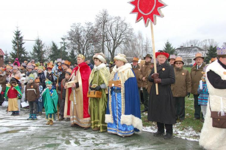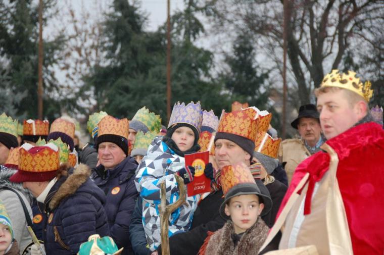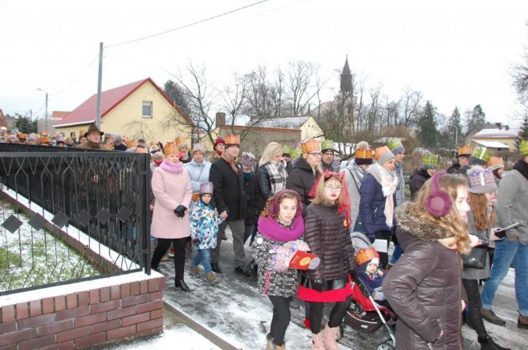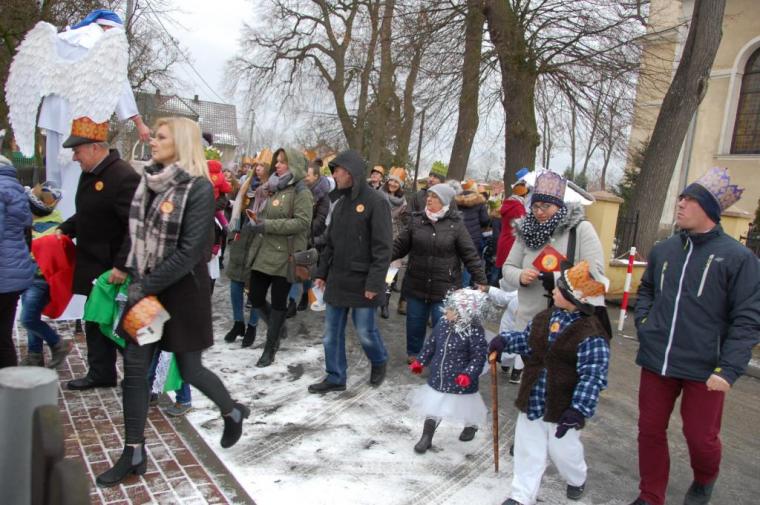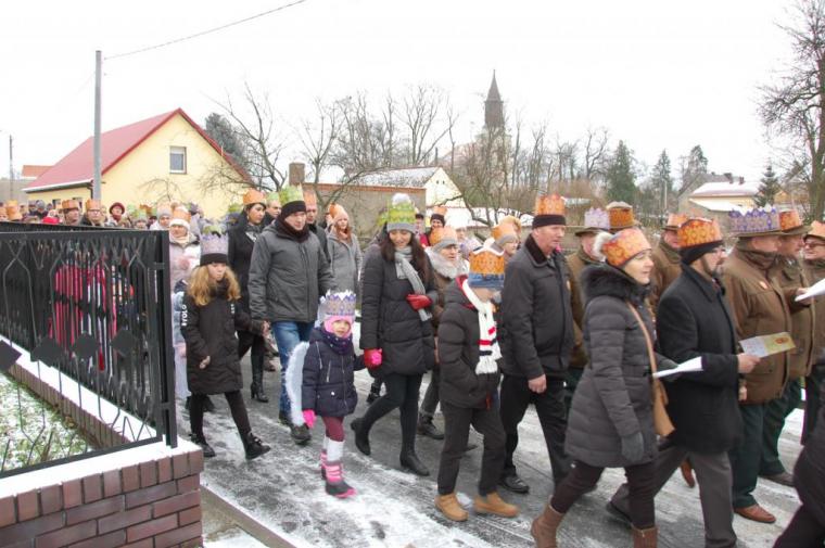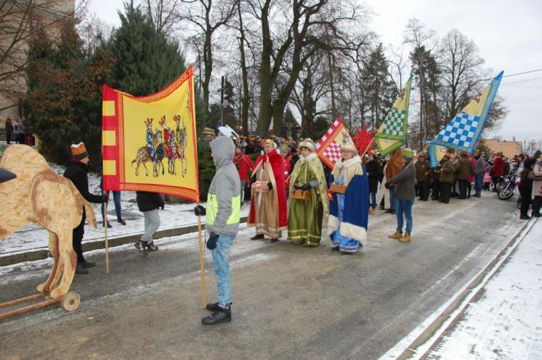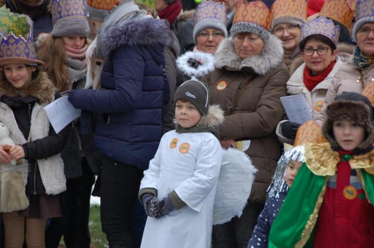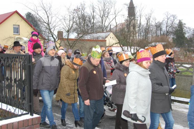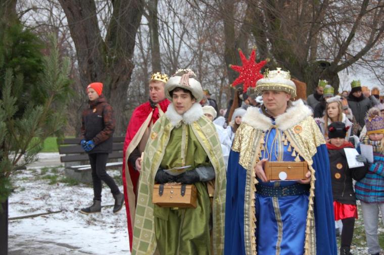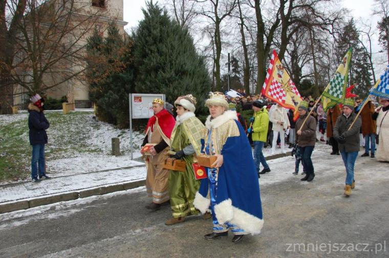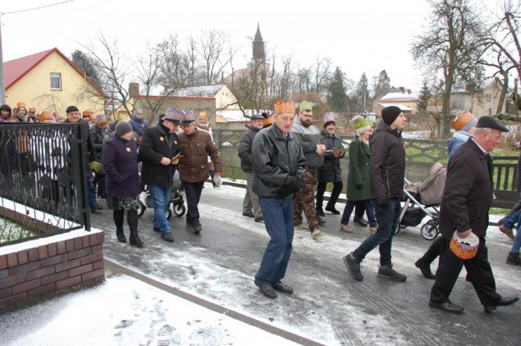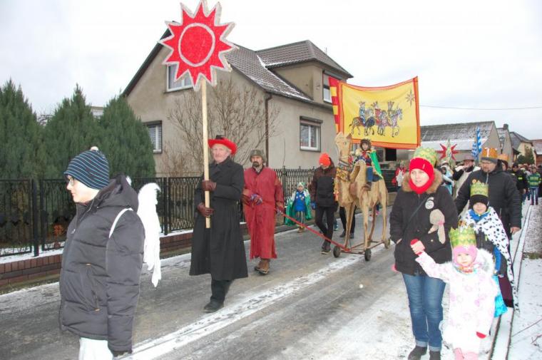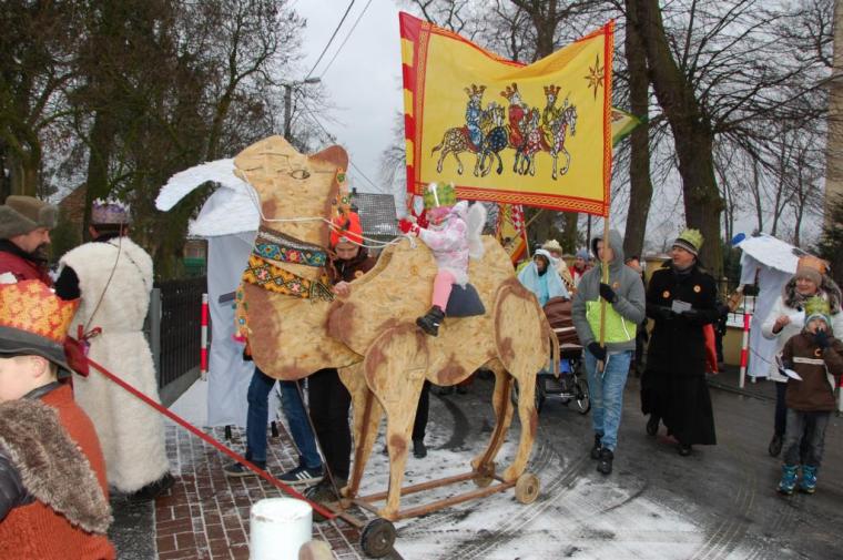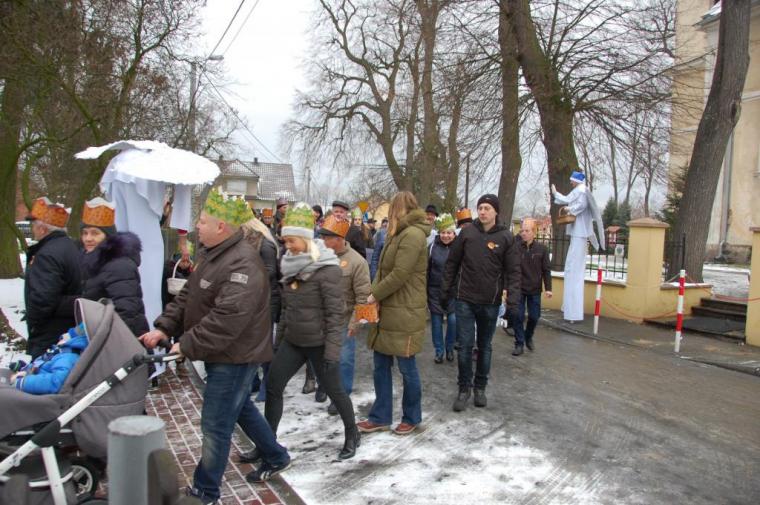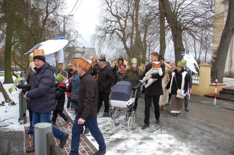 zostały  zainaugurowane uroczystości święta Trzech Króli. Orszak Trzech Króli wyruszył sprzed świątyni, w stronę  Grzybka,  gdzie w powstałej na tą uroczystość Szopce, Kacper, symbolizujący Europę, Melchior ~ Azję, a także Baltazar ~ Afrykę, złożyli dary Jezusowi. Zarówno w rolę Świętej Rodziny jak i Mędrców wcieliły się osoby z tutejszej wspólnoty parafialnej. Wiele wzruszeń dostarczyła uczestnikom Orszaku odśpiewana wspólnie „Kolęda dla nieobecnych”. Natomiast anioły w tradycyjnej już walce na poduszki z diabłami po raz kolejny udowodniły, że dobro zawsze zwycięża. Po ogromnych emocjach Orszak wyruszył w kierunku Altanki u Plebanka, gdzie wszyscy uczestnicy mogli ogrzać się przy ognisku i posilić się pieczoną kiełbaską i grochówką. Na zakończenie delektując się pysznym ciastem i kawą w Domu Ludowym, można było jeszcze raz posłuchać pięknych kolęd w wykonaniu tutejszej młodzieży. Koniecznie trzeba dodać,  uczestnicy Jubileuszowego Orszaku Trzech Króli w Lutogniewie  przybyli z różnych stron naszego regionu.