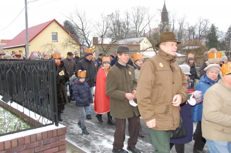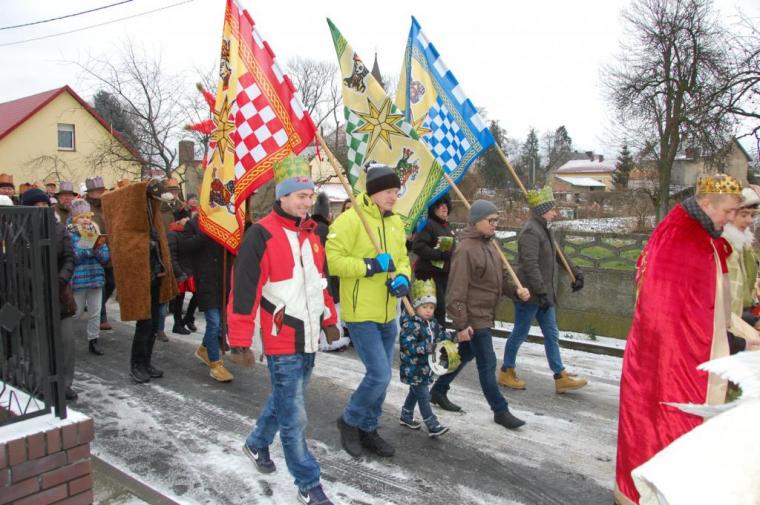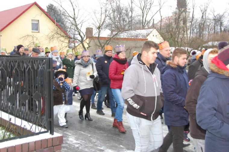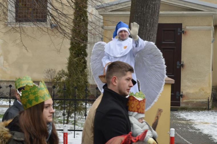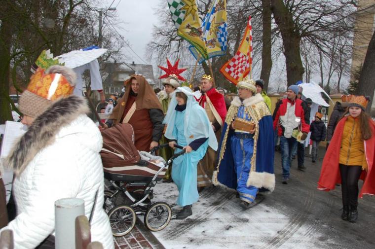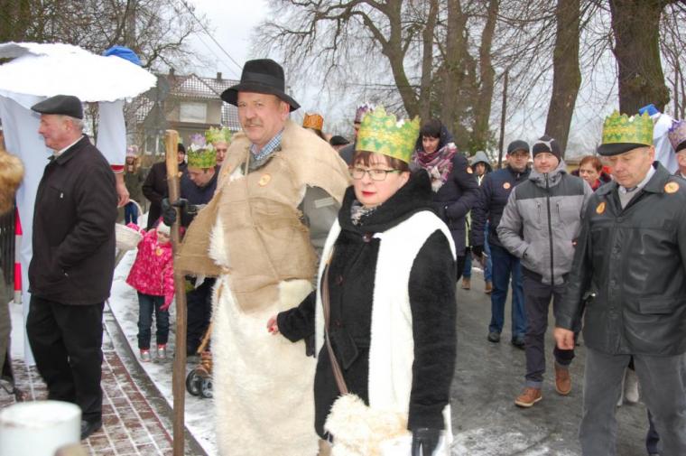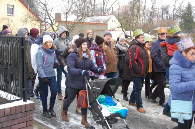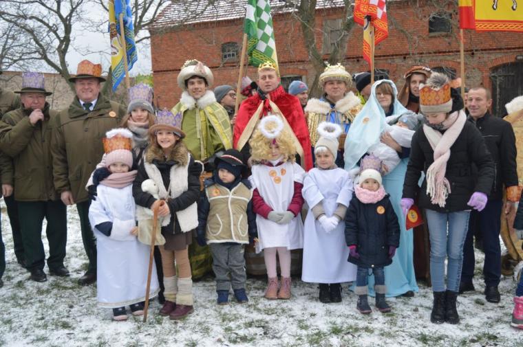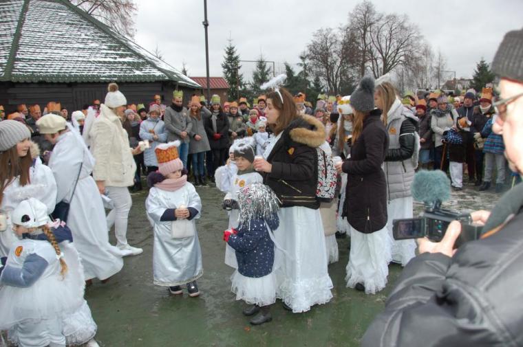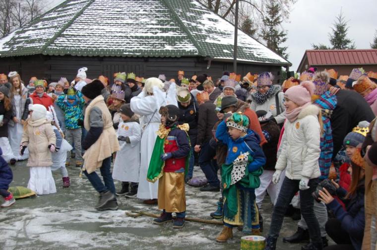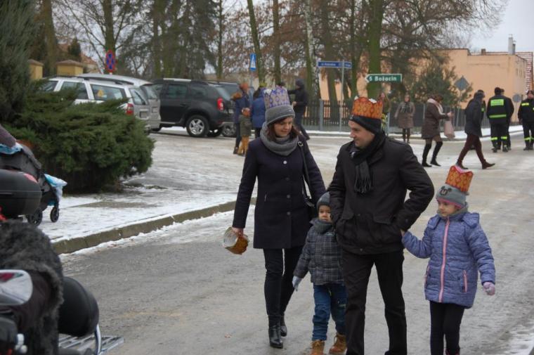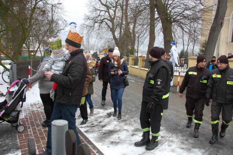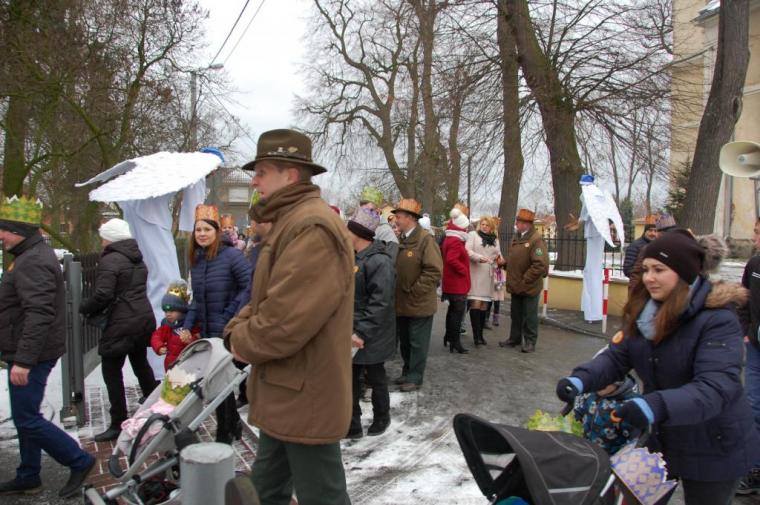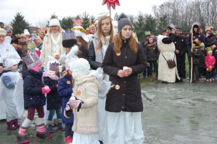 zostały  zainaugurowane uroczystości święta Trzech Króli. Orszak Trzech Króli wyruszył sprzed świątyni, w stronę  Grzybka,  gdzie w powstałej na tą uroczystość Szopce, Kacper, symbolizujący Europę, Melchior ~ Azję, a także Baltazar ~ Afrykę, złożyli dary Jezusowi. Zarówno w rolę Świętej Rodziny jak i Mędrców wcieliły się osoby z tutejszej wspólnoty parafialnej. Wiele wzruszeń dostarczyła uczestnikom Orszaku odśpiewana wspólnie „Kolęda dla nieobecnych”. Natomiast anioły w tradycyjnej już walce na poduszki z diabłami po raz kolejny udowodniły, że dobro zawsze zwycięża. Po ogromnych emocjach Orszak wyruszył w kierunku Altanki u Plebanka, gdzie wszyscy uczestnicy mogli ogrzać się przy ognisku i posilić się pieczoną kiełbaską i grochówką. Na zakończenie delektując się pysznym ciastem i kawą w Domu Ludowym, można było jeszcze raz posłuchać pięknych kolęd w wykonaniu tutejszej młodzieży. Koniecznie trzeba dodać,  uczestnicy Jubileuszowego Orszaku Trzech Króli w Lutogniewie  przybyli z różnych stron naszego regionu.