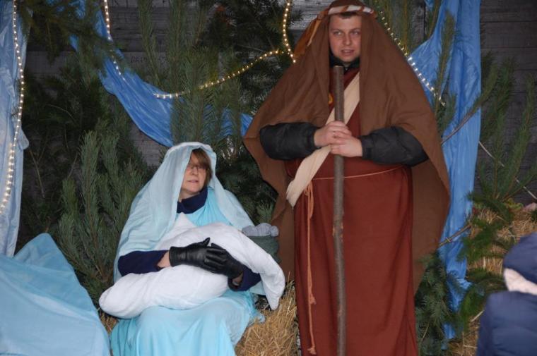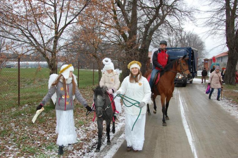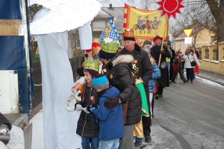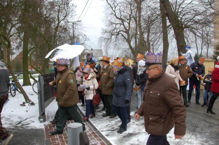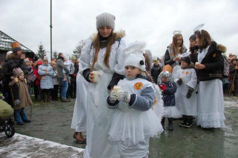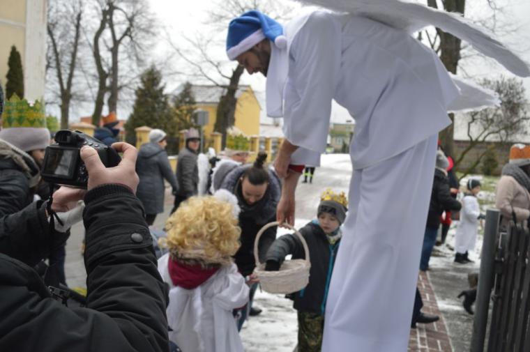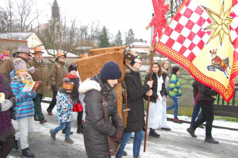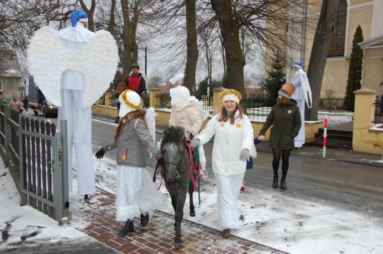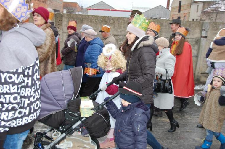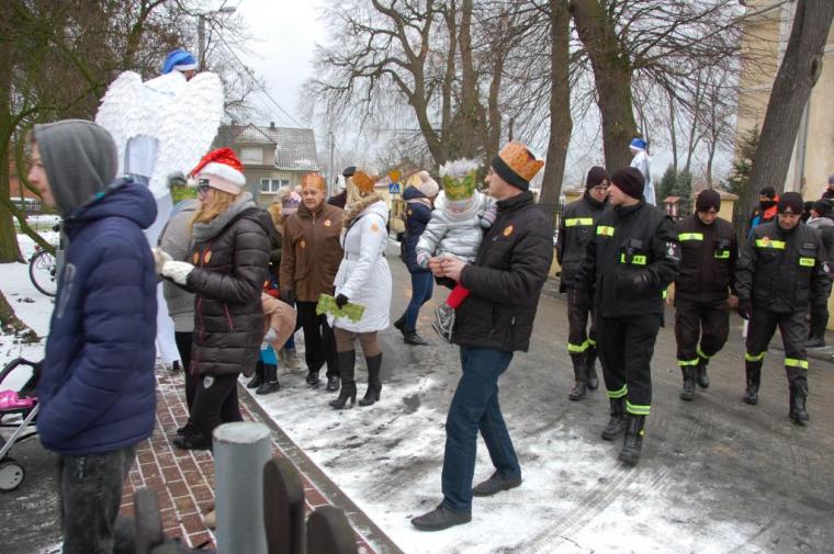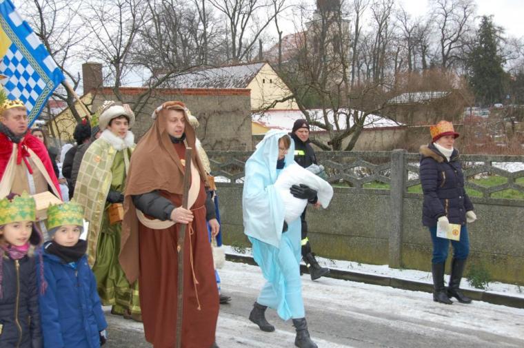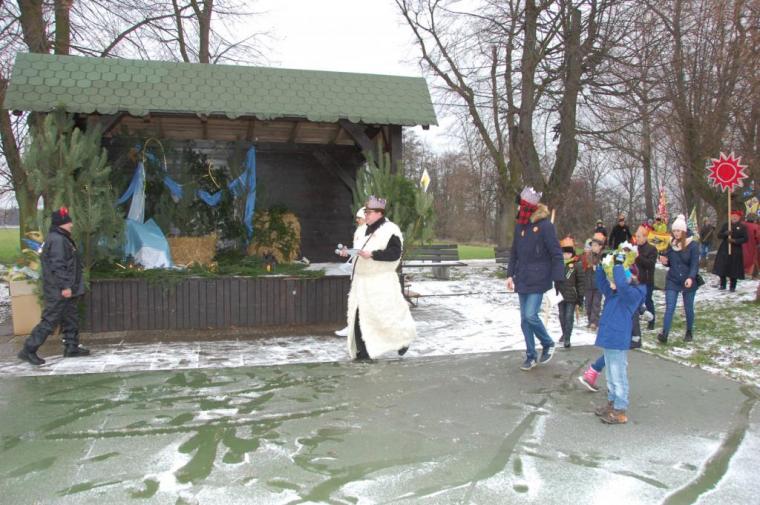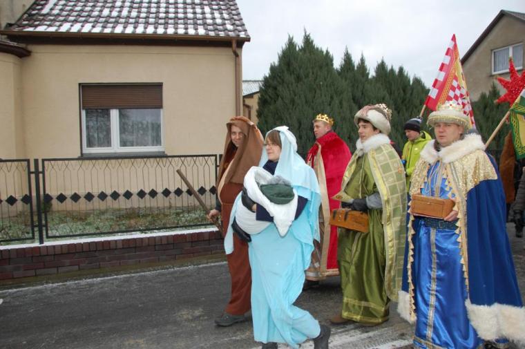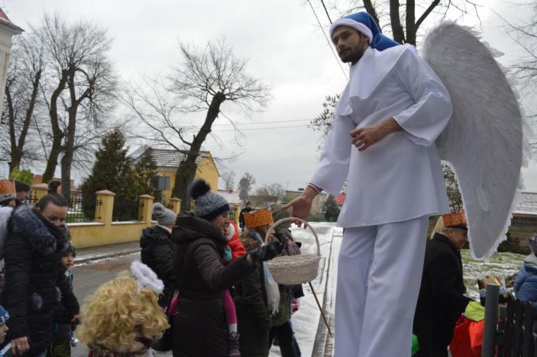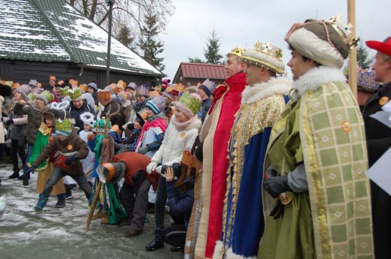 zostały  zainaugurowane uroczystości święta Trzech Króli. Orszak Trzech Króli wyruszył sprzed świątyni, w stronę  Grzybka,  gdzie w powstałej na tą uroczystość Szopce, Kacper, symbolizujący Europę, Melchior ~ Azję, a także Baltazar ~ Afrykę, złożyli dary Jezusowi. Zarówno w rolę Świętej Rodziny jak i Mędrców wcieliły się osoby z tutejszej wspólnoty parafialnej. Wiele wzruszeń dostarczyła uczestnikom Orszaku odśpiewana wspólnie „Kolęda dla nieobecnych”. Natomiast anioły w tradycyjnej już walce na poduszki z diabłami po raz kolejny udowodniły, że dobro zawsze zwycięża. Po ogromnych emocjach Orszak wyruszył w kierunku Altanki u Plebanka, gdzie wszyscy uczestnicy mogli ogrzać się przy ognisku i posilić się pieczoną kiełbaską i grochówką. Na zakończenie delektując się pysznym ciastem i kawą w Domu Ludowym, można było jeszcze raz posłuchać pięknych kolęd w wykonaniu tutejszej młodzieży. Koniecznie trzeba dodać,  uczestnicy Jubileuszowego Orszaku Trzech Króli w Lutogniewie  przybyli z różnych stron naszego regionu.