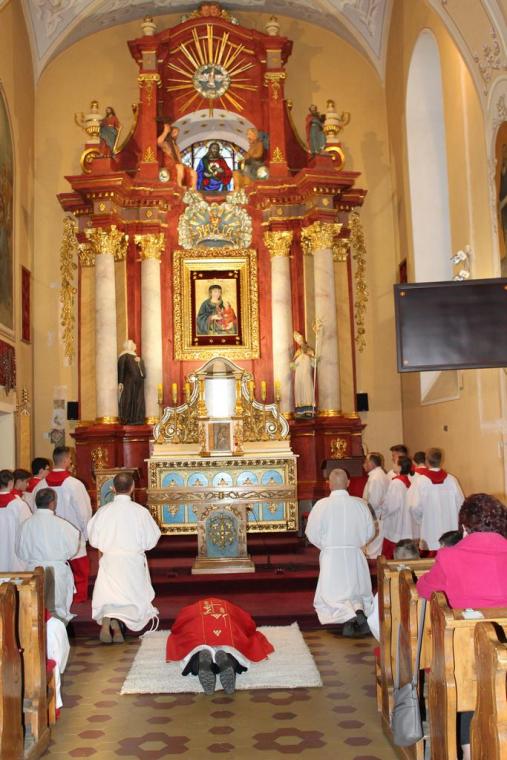 Niepowtarzalna wielkopiątkowa Liturgia Męki Pańskiej została odprawiona przez kustosza Sanktuarium, ks. kan. Łukasza Żurawskiego o godzinie 19:00. Rozpoczęła się ona od wejścia celebransa i asysty w ciszy do kościoła, którzy przed ołtarzem przez chwilę leżeli krzyżem. Po modlitwie wstępnej odczytane zostało proroctwo o Cierpiącym Słudze Jahwe i fragment Listu do Hebrajczyków. Następnie odczytany został, z podziałem na role, opis Męki Pańskiej według św. Jana.