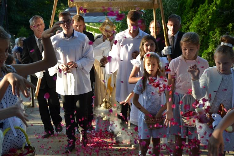 Po Mszy Świętej odbyło się wystawienie Najświętszego Sakramentu, odmówiliśmy Litanię do Serca Jezusowego. Następnie z Jezusem ukrytym pod postacią Chleba wyruszyliśmy alejkami cmentarnymi w procesji do czterech ołtarzu. Myślą przewodnią haseł, która znalazły się w tym roku na przygotowanych przez poszczególne rejony parafii była NIEDZIELA. Hasła skłaniały wiernych do spojrzenia na niedzielę w następujących aspektach: Niedziela dniem Kościoła, Niedziela dniem rodziny, Niedziela dniem wiary, Niedziela dniem człowieka. Procesję zakończyło błogosławieństwo Najświętszym Sakramentem na cztery strony świata. Następnie odbyło się poświęcenie wianków z ziół i kwiatów. To wyraz naszej wiary i zaufania Bogu. Przyniesione zostały pierwociny pól i łąk, by Bóg nam błogosławił, by nikomu nie zabrakło chleba powszedniego, bo tego będącego pokarmem dającym życie wieczne nigdy nie zabraknie… Obyśmy tylko chcieli się nim karmić… Zadziwiająca jest siła wiary i tradycji w naszej wspólnocie.