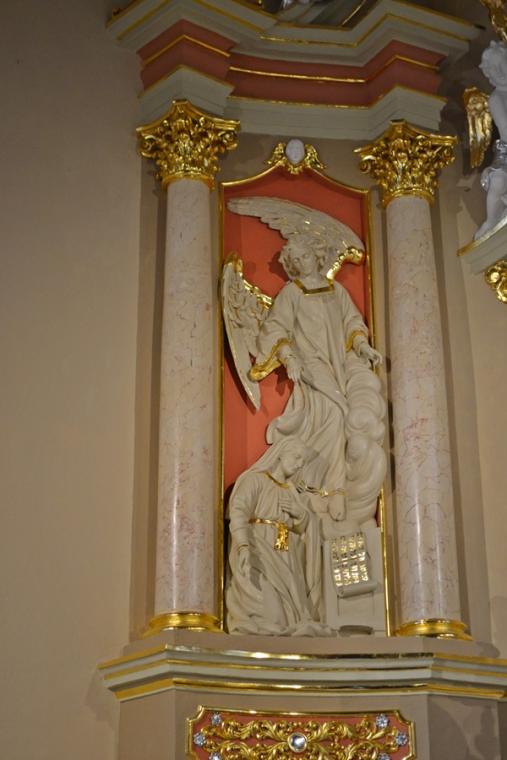 W czerwcu bieżącego roku w prezbiterium stanęły ponownie rusztowania. Pojawiła się też foliowa zasłona, która zabezpieczała  przed zabrudzeniem odnowione już elementy prezbiterium, ale jednocześnie sprawiała, że nie mogliśmy na bieżąco śledzić postępów prac renowacyjnych. Trwały prace przy płaskorzeźbach  znajdujących się po obu stronach Trójcy Świętej. Ta po lewej stronie przedstawia  Archanioła Gabriela  w scenie Zwiastowania, po prawej Archanioła Michała  w scenie walki z szatanem.  Pracom renowacyjnym zostały poddane także elementy drewniane ołtarza.