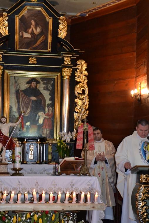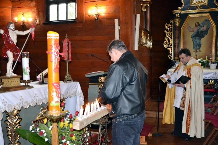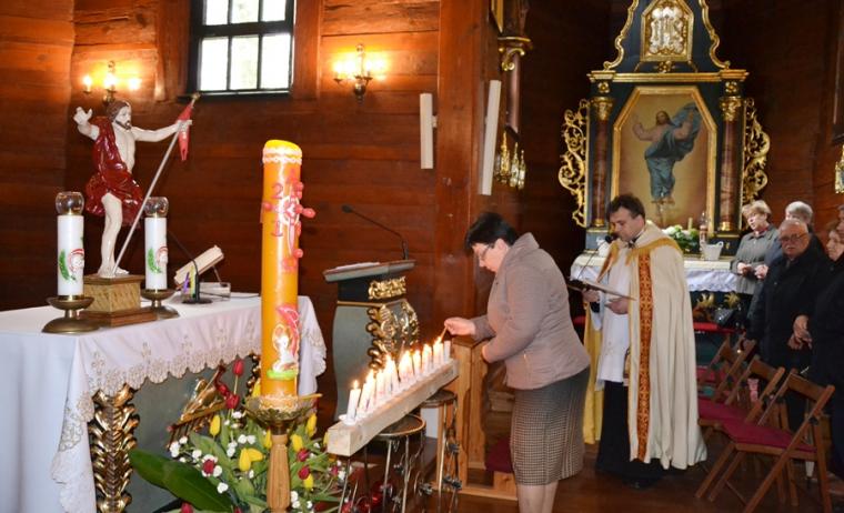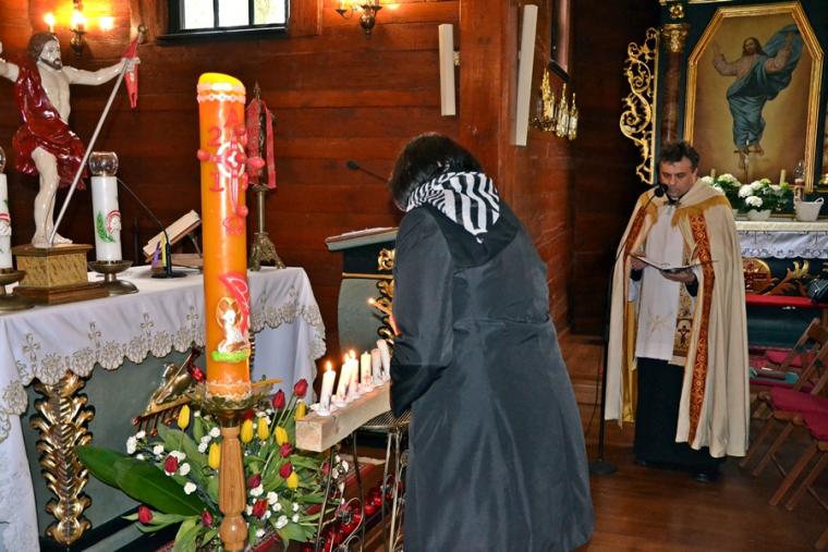 W Niedzielę Miłosierdzia Bożego w parafii zostały odprawione dwie Msze Święte z prośbą o łaski potrzebne dla jego czcicieli. Pierwsza sprawowana była przez ks. kan. Krzysztofa Ordziniaka o godz. 11:00 w kościele farnym. Jest tradycją w naszej parafii, że uczestniczą w niej dzieci. Podczas homilii ks. kanonik nawiązał do słów Ewangelii i zachęcał, zarówno dzieci jak i dorosłych, do troski o rozwój swojej wiary. Nie mogło zabraknąć nawiązania do obchodzonej Niedzieli Miłosierdzia Bożego. Dzieci otrzymały obrazki z Jezusem Miłosiernym na odwrocie których, znajdowały się słowa modlitwy Koronki do Miłosierdzia Bożego. Ich tekst przydał się najmłodszym parafianom, gdyż po zakończonej Eucharystii przy wystawionym Najświętszym Sakramencie odmówiona została właśnie Koronka i Litania do Miłosierdzia Bożego. Trudno wyobrazić sobie ten dzień bez modlitwy w Godzinie Miłosierdzia Bożego. Tę szczególną godzinę część parafian przeżywała w Diecezjalnym Sanktuarium Świętego Rocha. Tu ks. kan. Krzysztof poprowadził Koronkę do Miłosierdzia Bożego. Zanim rozpoczęliśmy modlitwę kapłan przywołał fragmenty z Dzienniczka s. Faustyny. Były wśród nich następujące słowa Jezusa: „Pragnę, aby święto Miłosierdzia, było ucieczką i schronieniem dla wszystkich dusz, a szczególnie dla biednych grzeszników. W dniu tym otwarte są wnętrzności miłosierdzia Mego, wylewam całe morze łask na dusze, które się zbliżą do źródła miłosierdzia Mojego. Która dusza przystąpi do spowiedzi i Komunii świętej, dostąpi zupełnego odpuszczenia win i kar”( 699). Czy można nie skorzystać z tego szczególnego czasu łaski? W czasie Koronki prosiliśmy Pana Jezusa o miłosierdzie dla zmarłych spoczywających na otaczającym Diecezjalne Sanktuarium Świętego Rocha cmentarzu, a także za zmarłych polecanych w wypominkach rocznych. Ich nazwiska wyczytywał ks. kanonik pomiędzy poszczególnymi częściami modlitwy. Po Koronce do Miłosierdzia Bożego w sanktuarium odprawione zostało nabożeństwo Drogi Światła. Nabożeństwo to chyba już na stałe wpisało się do scenariusza obchodów Święta Miłosierdzia Bożego w naszej parafii. Niesie ze sobą ono tyle nadziei. Było okazją do przeżycia 14 spotkań ze Zmartwychwstałym Panem, ale i czasem refleksji nad tym, za co powinniśmy przeprosić Jezusa. Przy rozważaniu poszczególnych spotkań od paschału odpalane były kolejne świeczki. Tuż przed błogosławieństwem zapłonęła czternasta. Po nabożeństwie Drogi Światła w sanktuarium odprawiona została kolejna Msza Święta w intencji czcicieli Miłosierdzia Bożego z Mikstatu i Komorowa.